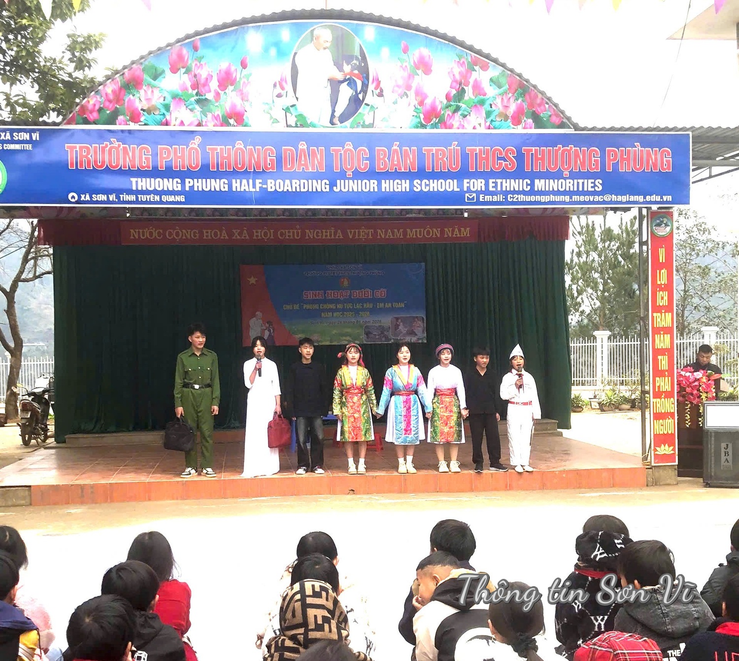 Ngày 26-1, Trường Phổ thông dân tộc bán trú THCS Thượng Phùng phối hợp Công an xã Sơn Vĩ tổ chức tiết sinh hoạt dưới cờ với chủ điểm “Phòng, chống hủ tục lạc hậu – Em an toàn” năm học 2025-2026.